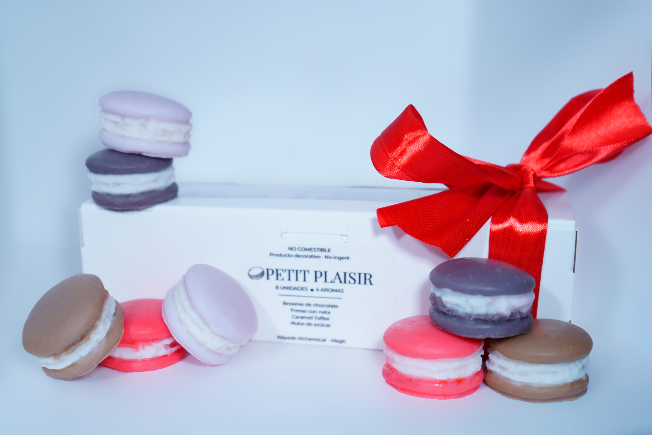 Petit Plaisir es una caja de wax melts en forma de macarons que transforma tu hogar en un rincón dulce y acogedor. Cada aroma despierta sensaciones únicas, como un viaje a los pequeños placeres de la vida: